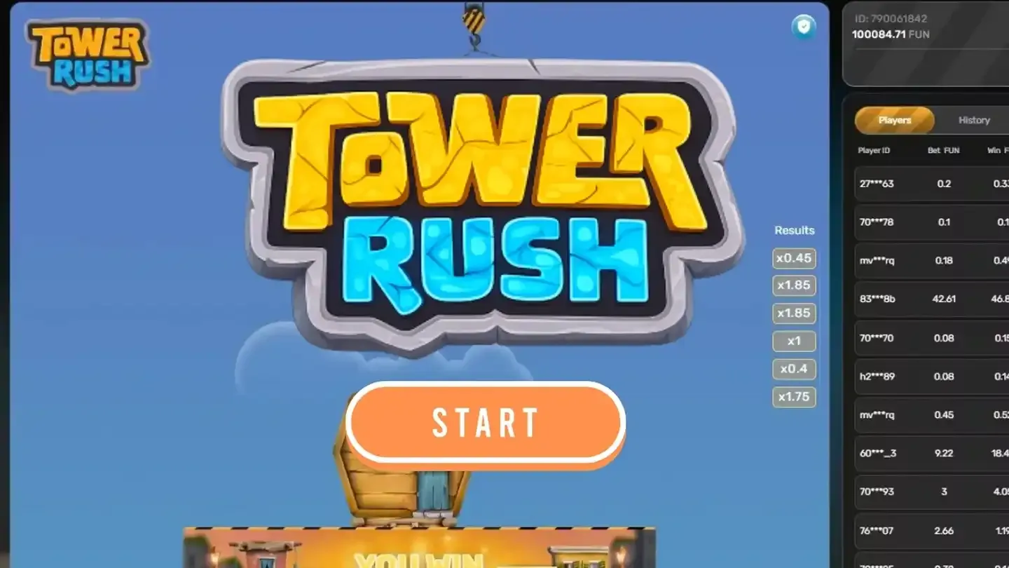 Tower Rush is an exciting crash-style game developed by Galaxsys where players watch a tower climb higher with increasing multipliers. You place your bet, watch the tower rise, and cash out before it collapses to secure your winnings. The longer you wait, the higher the potential payout, but the greater the risk of losing everything if the tower falls before you cash out.